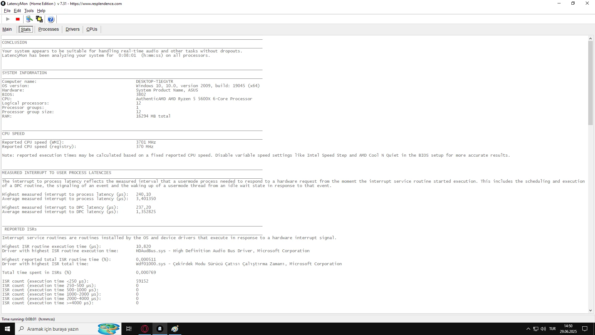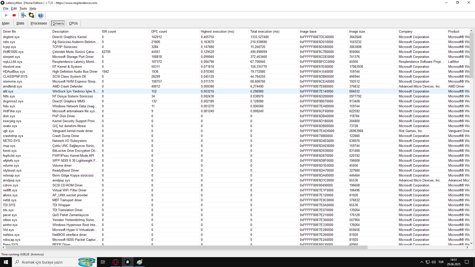 LatencyMon ile ortalama 7-8 dk taratma yaptım aşağıdaki görseldeki gibi sonuçlar çıktı oyunlarda drop fps düşüş sorunlarının bunlarla bi alakası varmı acaba ?