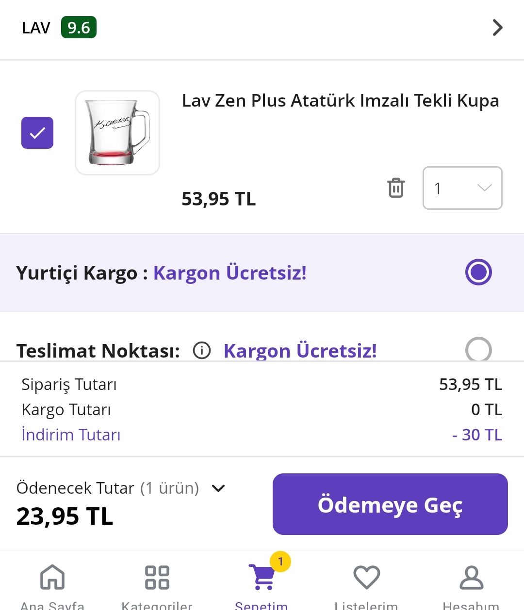 23:00 yani 1dk sonra Anasayfada 30TL Tık kopunu alıp üstteki ürüne uygulayin kargoda bedava