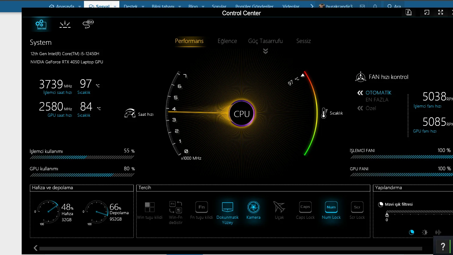 leptop performans modunda ve en hızlı fan modunda çalışıyor (zaten ucak kalkıyor bildiğiniz)