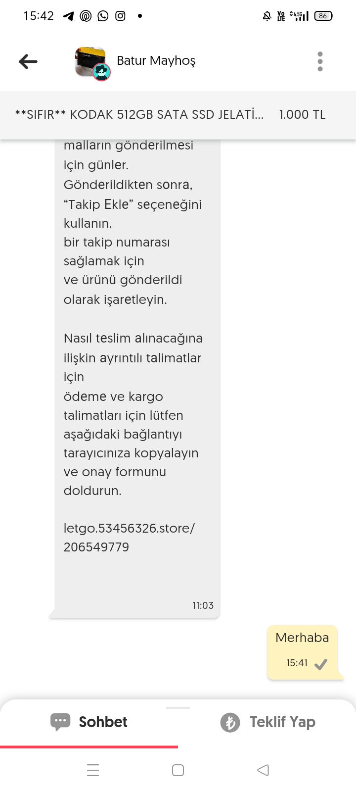 NuriCans yazmış: Letgoda böyle bir şey yok diye biliyorum Alıntıyı görüntüleAlıntıyı görüntüle Devamı için tıklayın... Dolandırıcı