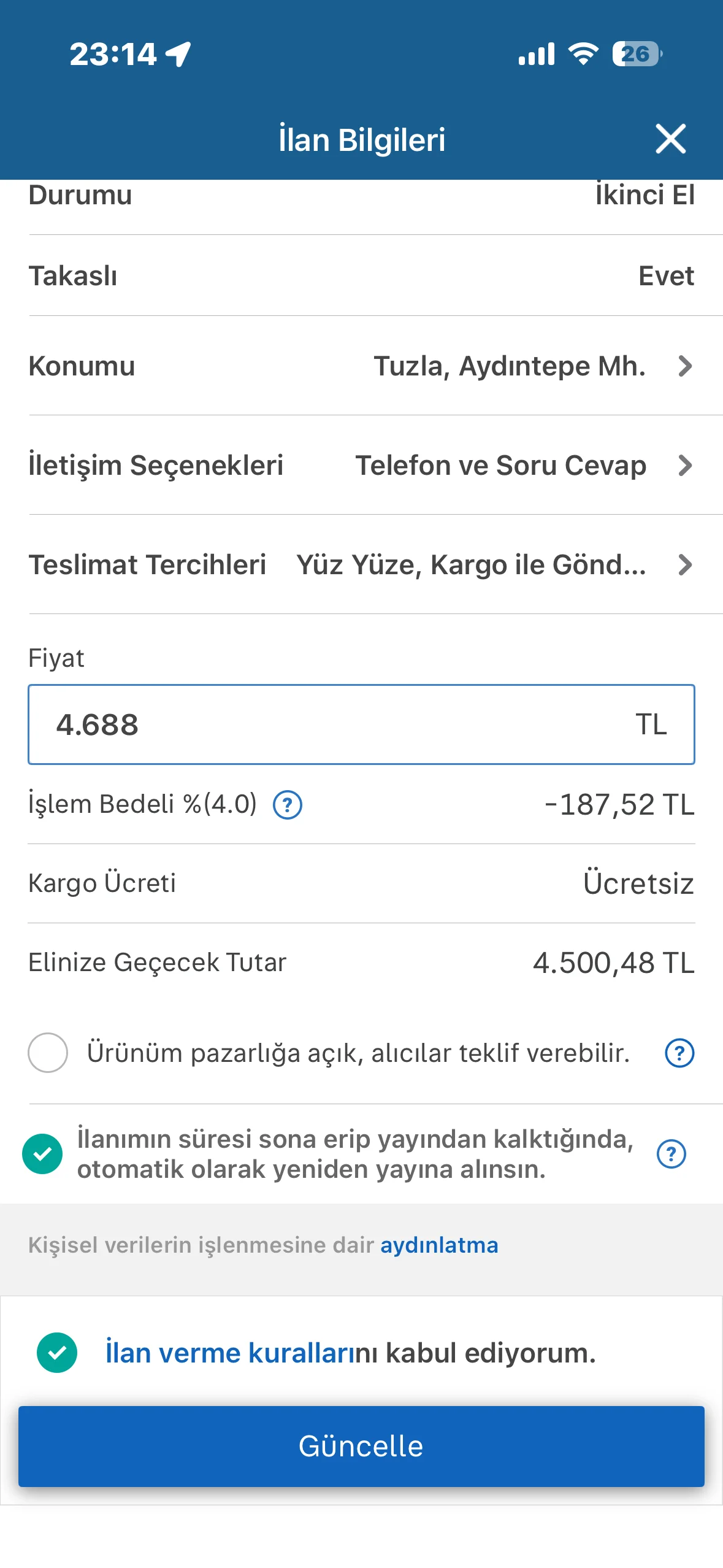 ya da elden satcaksın bbunlara güven de olmaz paran da eksiklşir. 500 bu kesecegıne alıcıya daha ucuzaa ver
