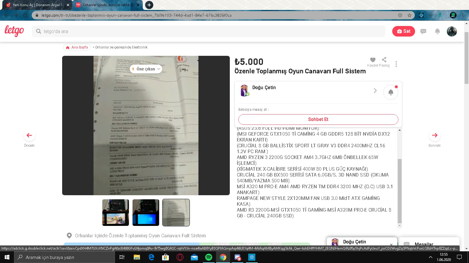Adam 1050 ti sistemi 5000 tlden satıyor. Ben ona R5 1600 AF 1660S li sistem toplanır diyorum adam bana sen git acer pc al diyor :D Ayrıca bundan önce sattığı sistemde i7 var diyor 8-9 K fiyata toplanmaz diyor ama faturada R3 2200G yazıyor. toplanalım bu adamı şikayet edelim.