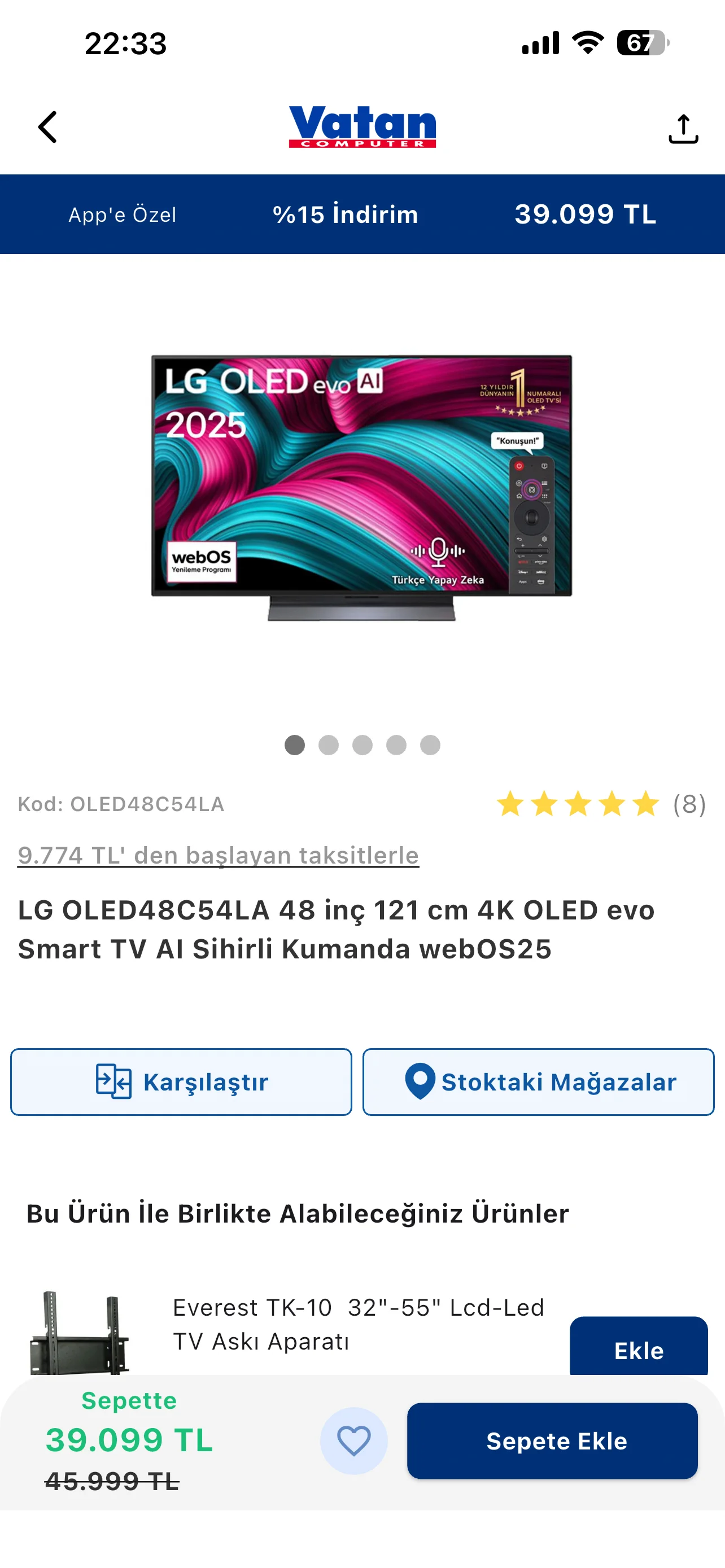 ❌İndirim Bitti! LG OLED TV 48C5 39.100