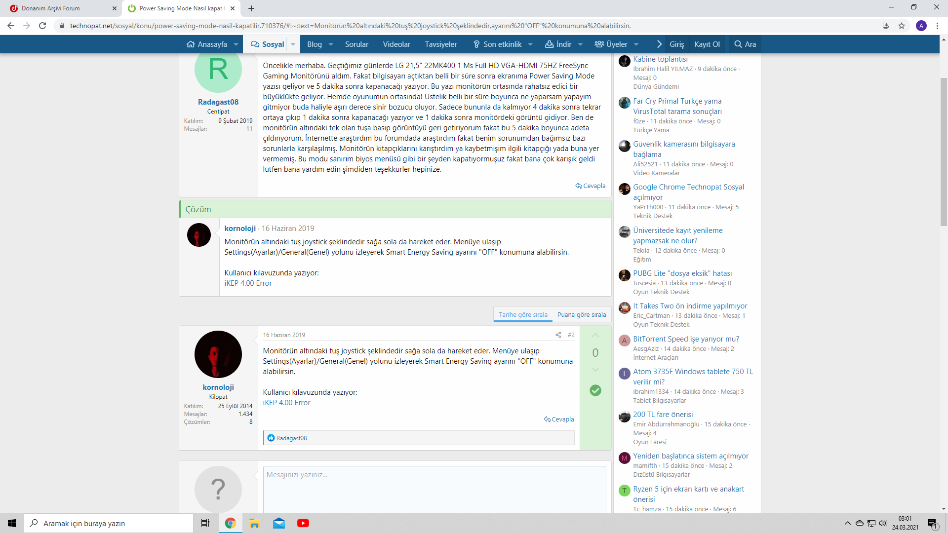 RamizzDayıı 80+ Katılım 9 Ocak 2021 Mesajlar 416 Reaksiyon skoru 160 24 Mart 2021 #2 K vortex25 yazmış: sorunum da aynı bu şekilde cözümü yazılmıs ama dediklerimi yeri bulamadım detaylı gösteriri misiniz Alıntıyı görüntülelg monitör hakkında hiç bilgim yok maalesef Devamı için tıklayın...