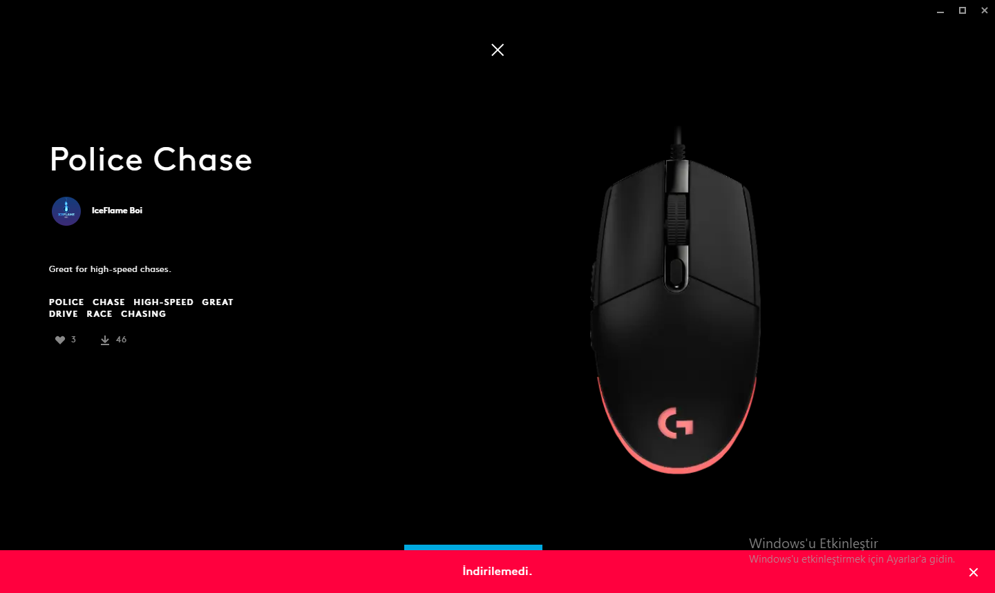Kısa ve öz bir şekilde anlatacak olursam g102 mouseuma ışık modu indirmek istediğimde indirilmiyor bildirimi alıyorum sorunum ne olabilir ?