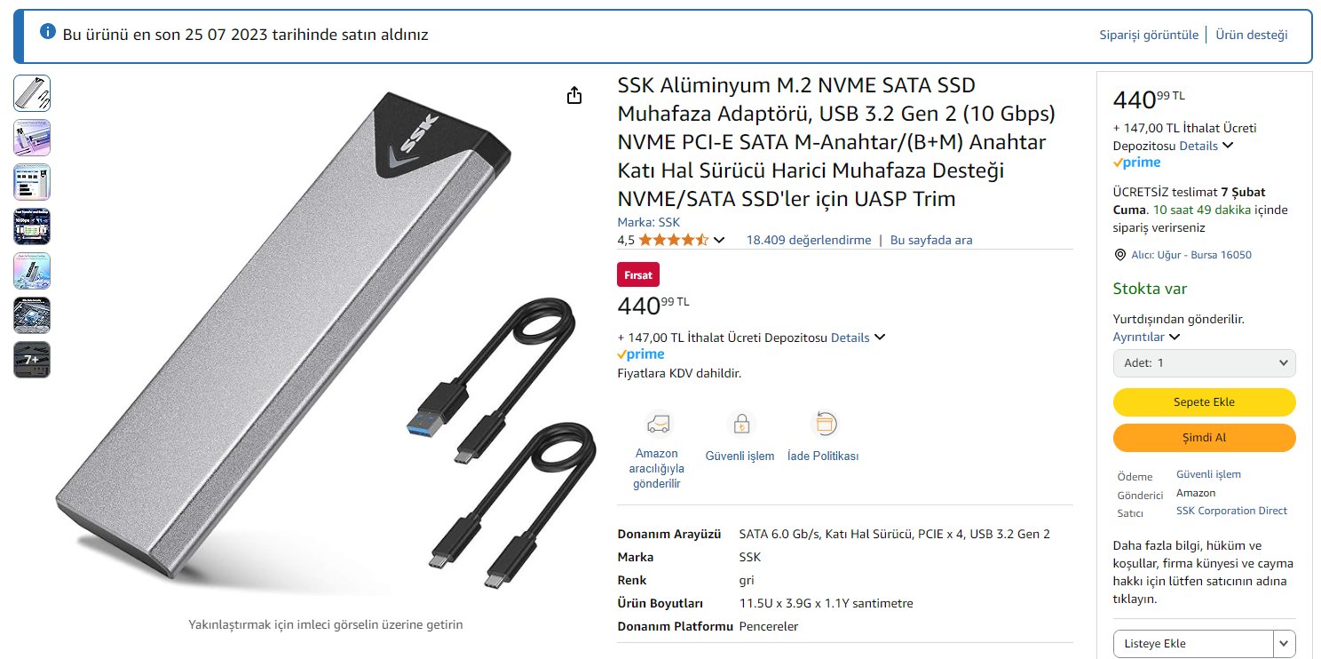 bypast 80+ Bronze Katılım 5 Nisan 2020 Mesajlar 1,740 Reaksiyon skoru 400 20 Ocak 2025 #1 Selamın aleyküm m2 nvme destekli disk kutusu lazım yardımcı olursanız sevirim