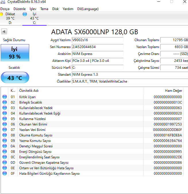 SSD'nin kendi uygulaması varsa indirip güncelleme yapın. Ayrıca kendi uygulamasından SMART verilerini bir paylaşın.