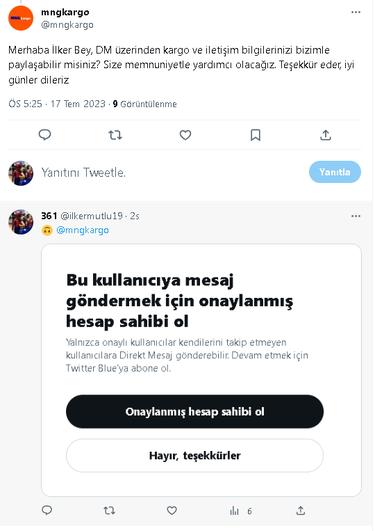 Ha bu arada twitter üzerinden twit atarken MNG belki ilgilenir sosyal medyadan belki çözeriz diye onu da etiketliyorum onu da iyi izleyin.