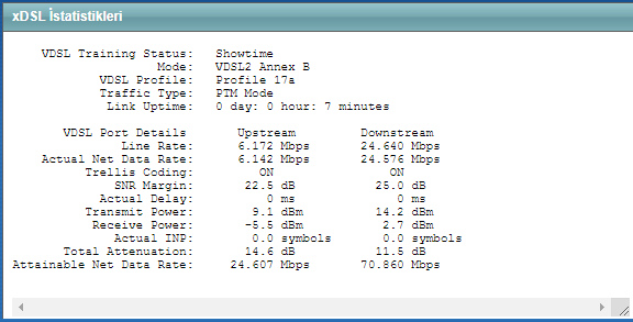 Maksimum 70 download, 24 upload yazmakta ancak tamamını kullanamazsın. 50 veya 60Mbps download rahatlıkla alabilirsin. Üzerinde SNR Margin değerin biraz düşük olacağından kopmalar yaşayabilirsin. Sonuna kadar zorlaman iyi değil yani.