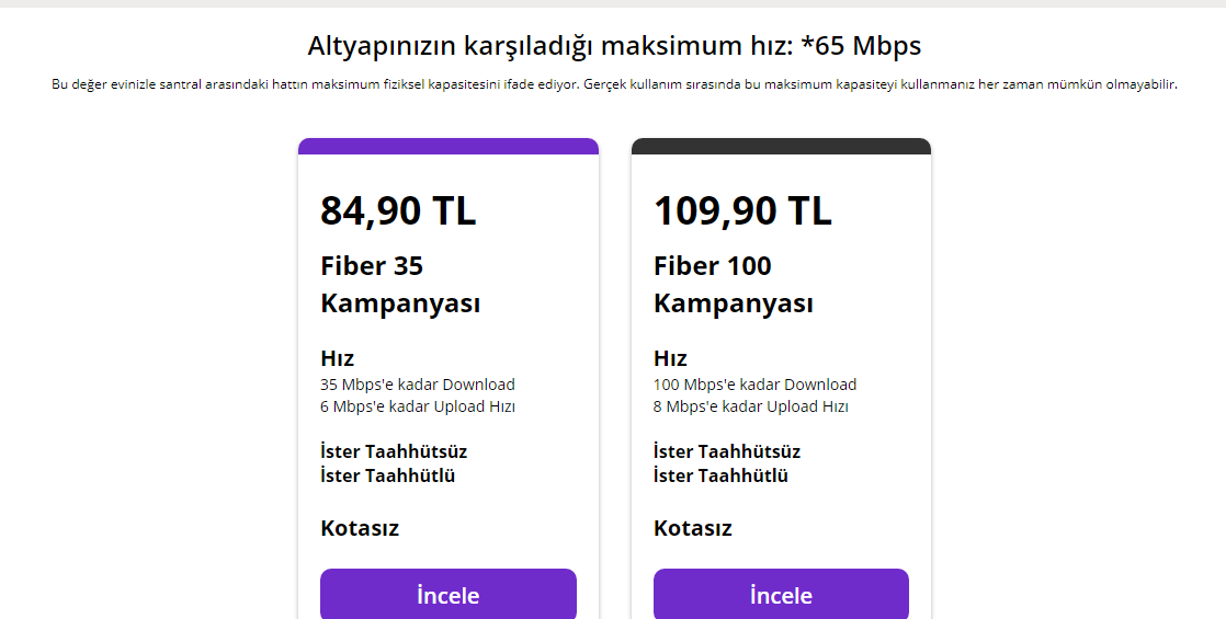 65 Mbps alabilirsin en fazla. Turknet'in öyle vermesine şaşırmadım. Netspeed genelde en doğrusunu söyler ve Millenicom'da aynı değeri verince 65 Mbps'lik paketleri veya 75 Mbps'likleri alıp 65'e sabitleterek alabilirsin.
