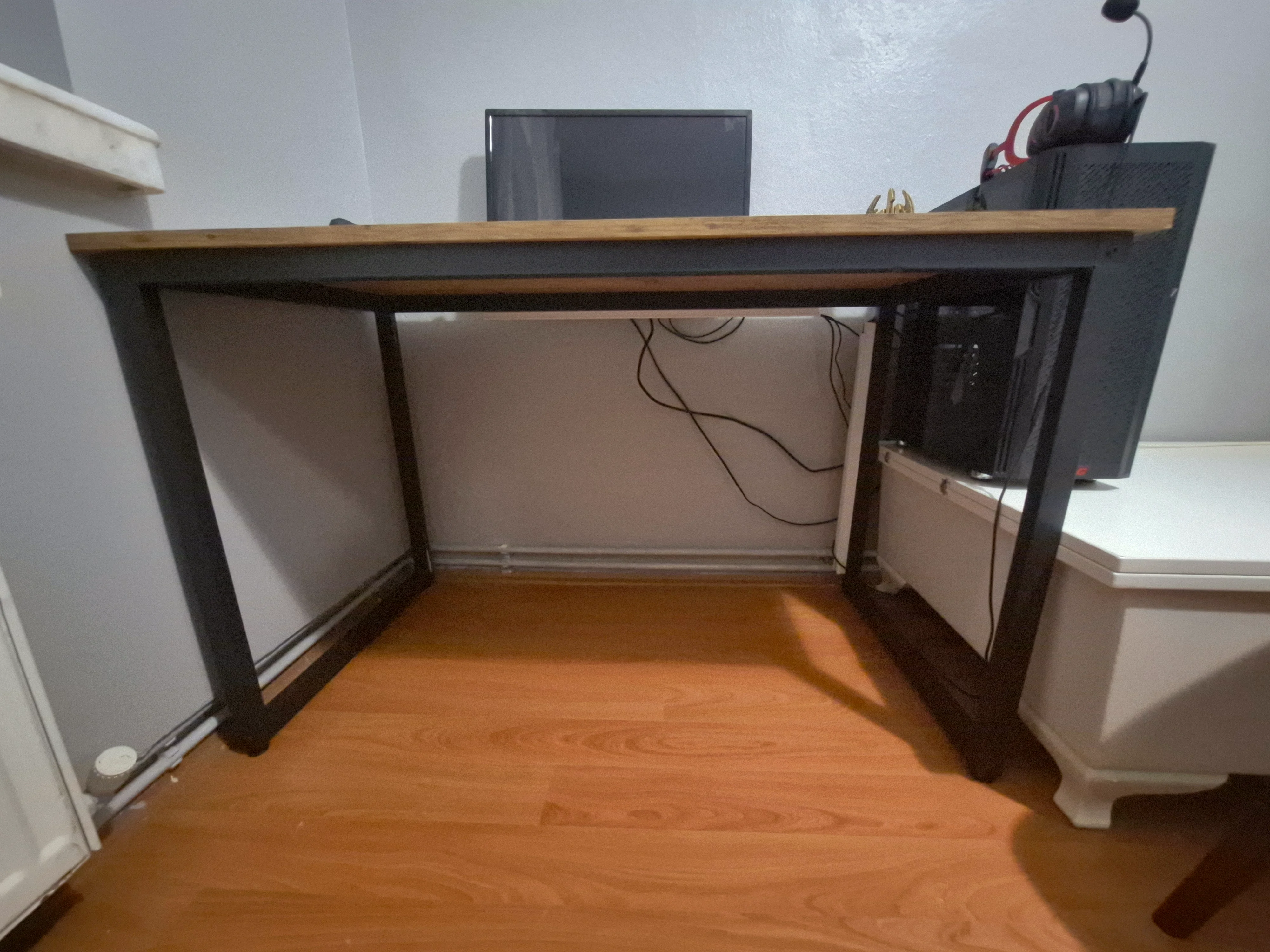 Beyaz masa, sarı iskelet, kırmızı braket