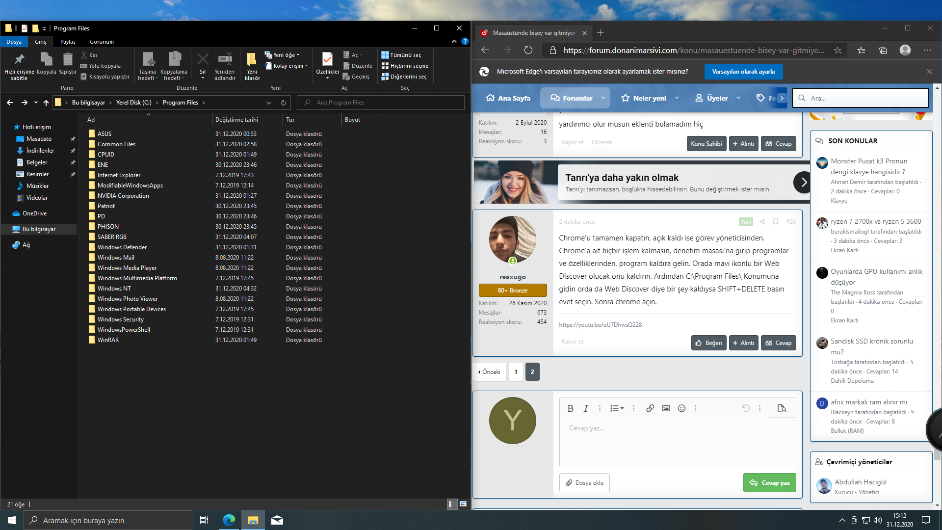 hem chrome sildim web discover da sildim ama üstte boşluk kaldı orayı hala kullanamıyorum yanda görüldüğü gibi web discover ile ilgili bi dosya yokChrome'u tamamen kapatın, açık kaldı ise görev yöneticisinden. Chrome'a ait hiçbir işlem kalmasın, denetim masası'na girip programlar ve özelliklerinden, program kaldıra gelin. Orada mavi ikonlu bir Web Discover olucak onu kaldırın. Ardından C:\Program Files\ Konumuna gidin orda da Web Discover diye bir şey kaldıysa SHIFT+DELETE basın evet seçin. Sonra chrome açın.