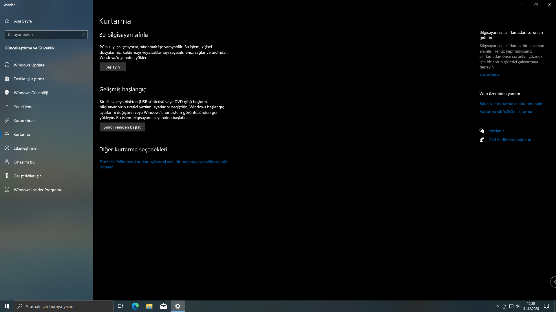 tamam kardeşim sağolasın çözüldü bide bişey sorcam. üstteki taraftan pc yi sıfırlarsam windows gitmez demi sadece 3. parti uygulamalar silinir windows yeni yüklenmiş gibi direkt açılır değil miDediklerimi yaptıysan çözülmesi lazım ki attığın ss'te problem görünmüyor gitmiş üstten fakat yine bir şey kaldı diyorsan benim göremediğim. PC'ye res atıp tekrardan bakar mısın?