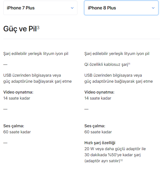 1k mah farkı var 7 plusla 8 arasında