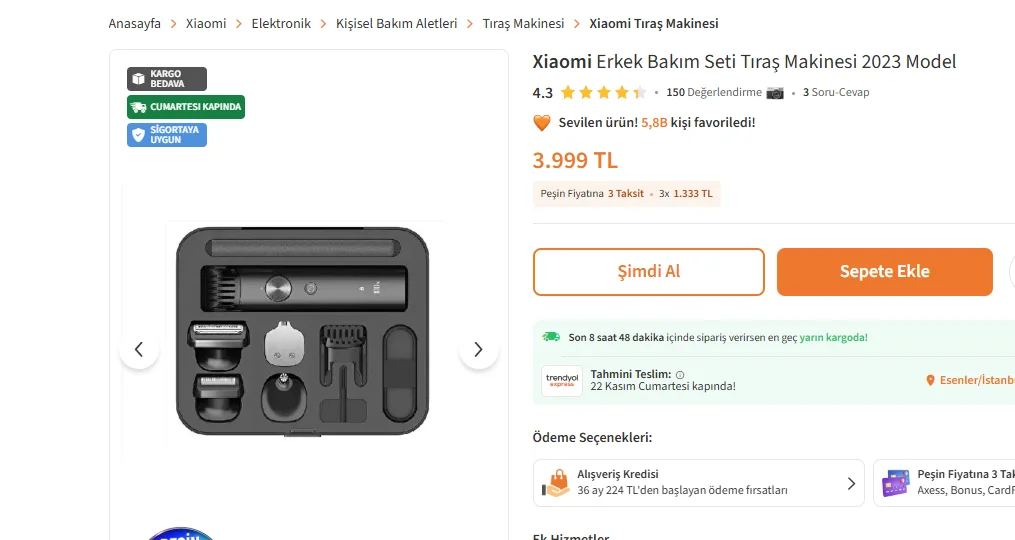 Merhaba Tıraş makinası arıyorum 2k civarlarına kadar ıslak-kuru su altında da çalışabilen bir ürün bakıyorum daha önce xaomi'nin görsel de ki ürününü kullanıyordum fakat 2 yılın sonunda ürün bozuldu o yüzden yeni ürün bakıyorum kullanıp tavsiye edebileceğiniz yanakları sıfır şekilde temizleyebilecek ve vücut için güzel bir ürün arayışım vardır
