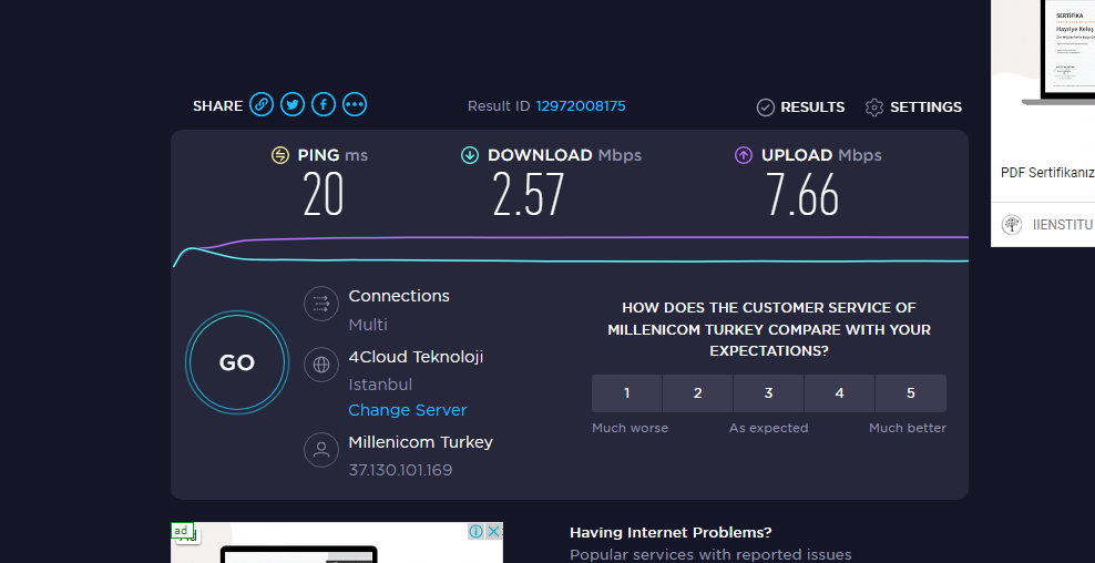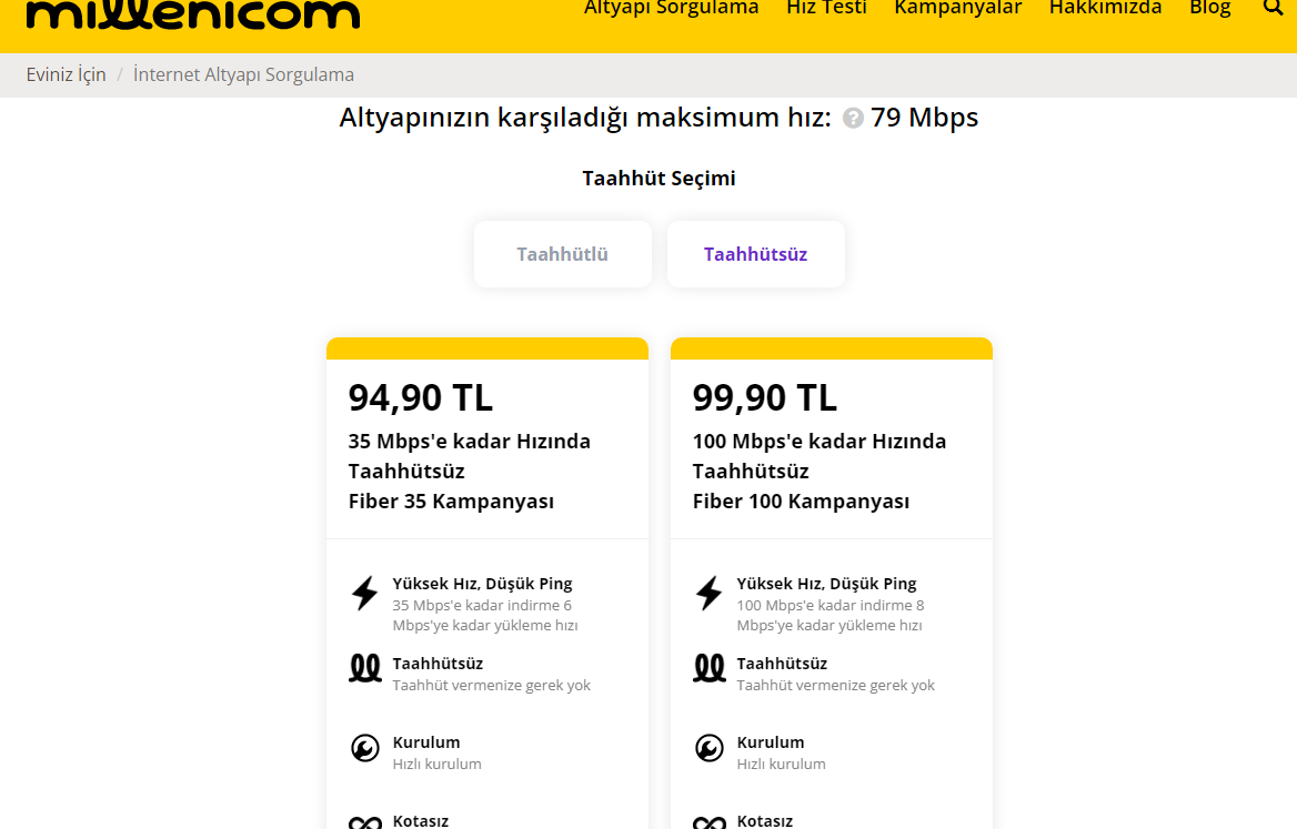türknette bizimde aynısı oldu 100 lük aldım 81 destekliyordu 65-70 görüyordu bağlantı kopuyordu sendede yavaşlıyor bir şekilde ulaşıp paketi 50 mbps yaptırın kafanız rahat olur