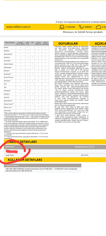 Faturaya dikkatli bakın. İşaretli olan kısma.