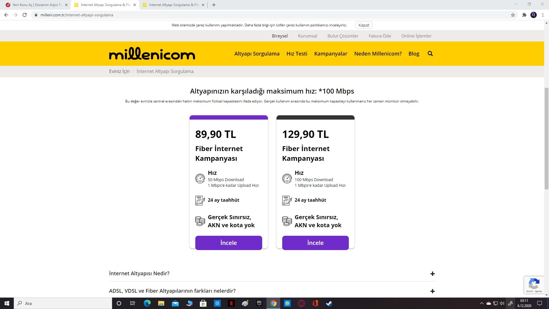 netspeed tırt . millenicom un sorgulaması en güvenilir olanı .. hattım 98 mbps e kadar destekliyor gözüküor 93mbps hız alıyorumAltyapıyı Netspeed'Den sorgula diyorum.
