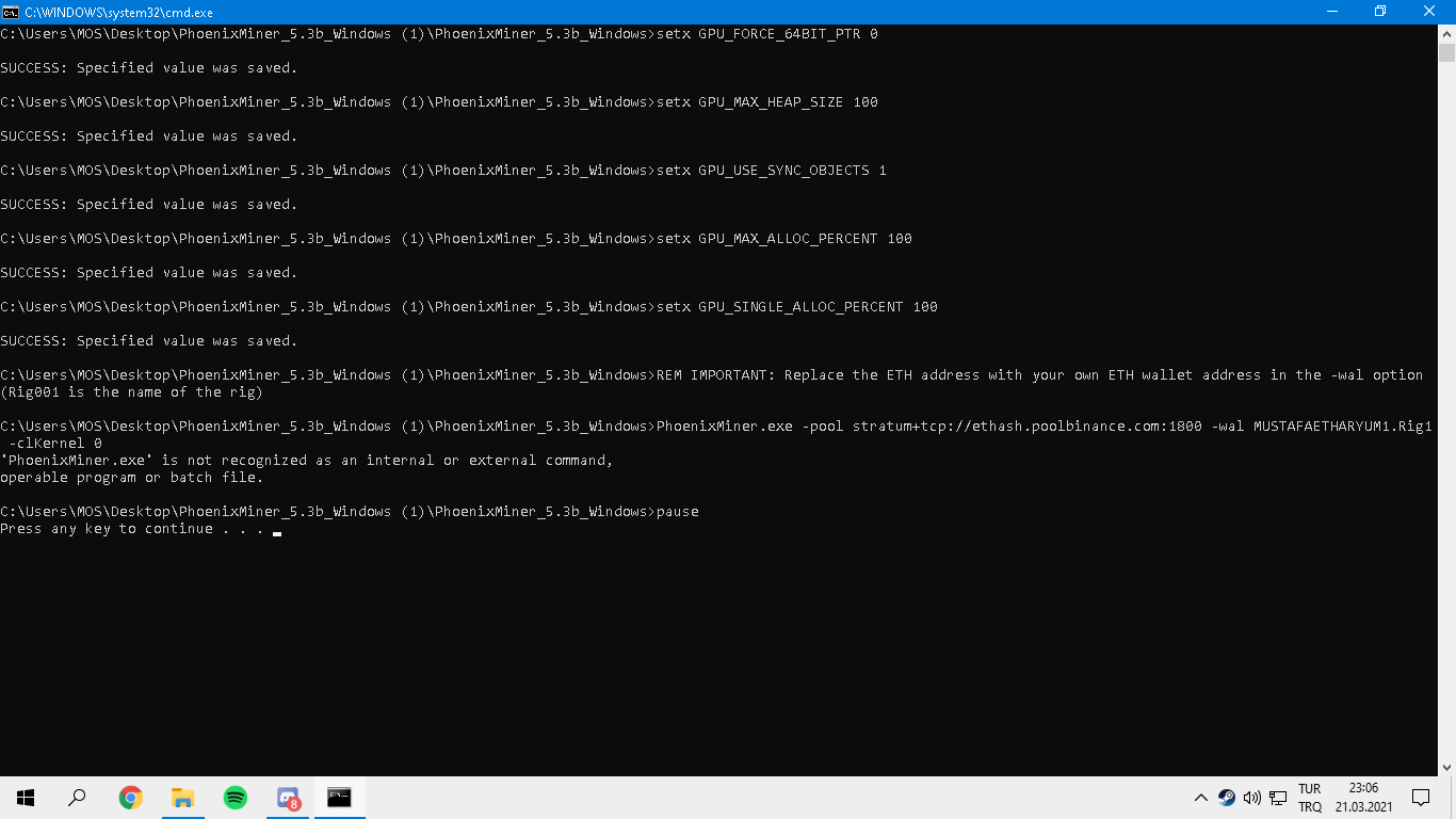 bat dosyasında pause' u 1 satır alta yazın, ayrıca wal adresinin yanına rig01 yazmayın. -worker rig01 yazın.