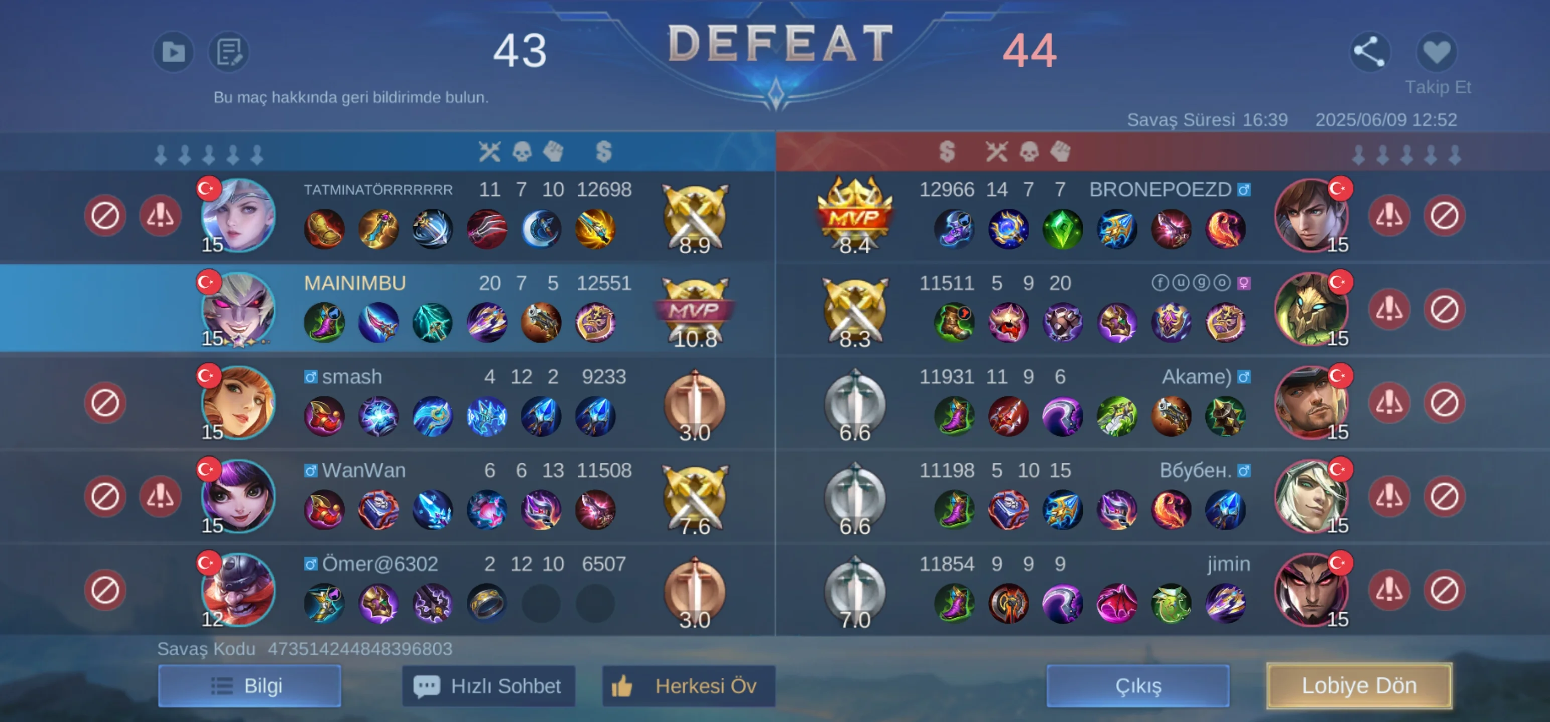 Mobile Legends' da sürekli MVP oynayıp takımı yönlendirmeme rağmen kaybediyorum.
