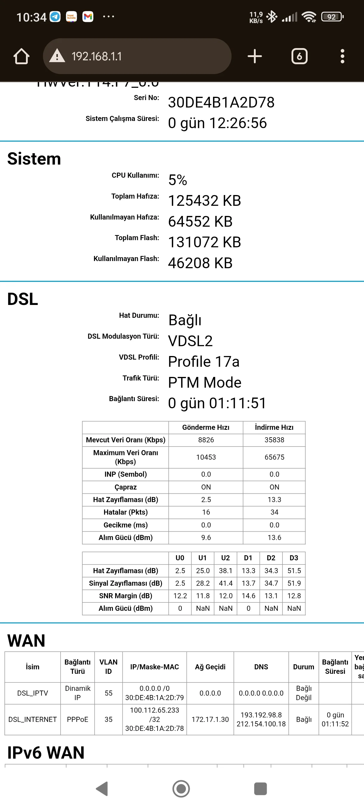Şu anki hat değerlerim hocam sıkıntı var diyorlardı modemi resetledim güncelleme attılar düzelttiler anlam veremiyorum bunlaraKabloda sinyal zayıflaması kullandıkça oluyor bu bakırda hattı yenilemek lazım