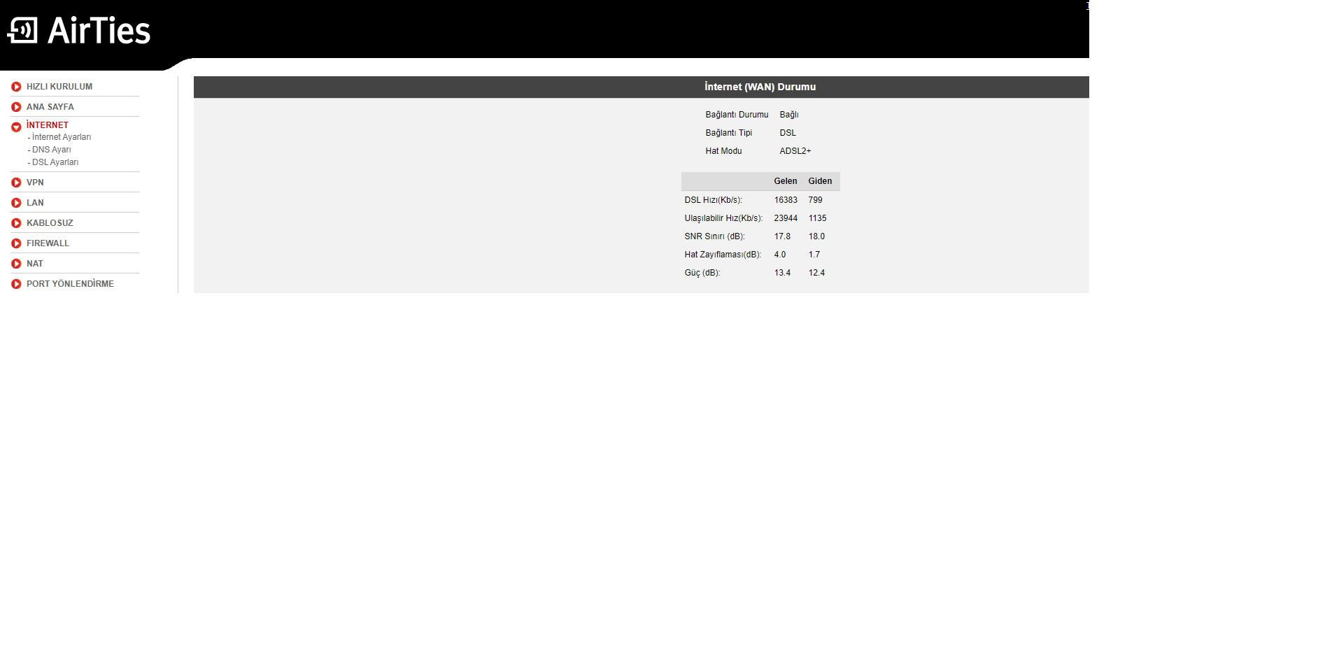 arkadaşlar eski model airties marka modemden kullanıyorum ama cs go ya girince 700-1000 ping ile oynuyorum. delirmek üzereyim. modem arayüzünden aldığım bu verilere bakarsak internet hızı nasıl sizce? modemi değiştirmelimiyim yoksa internet hızım gerçekten yavaş mı ? 16 mbs olduğunu söylediler bana kafayı yememe ramak kaldı lütfen yardım edinn