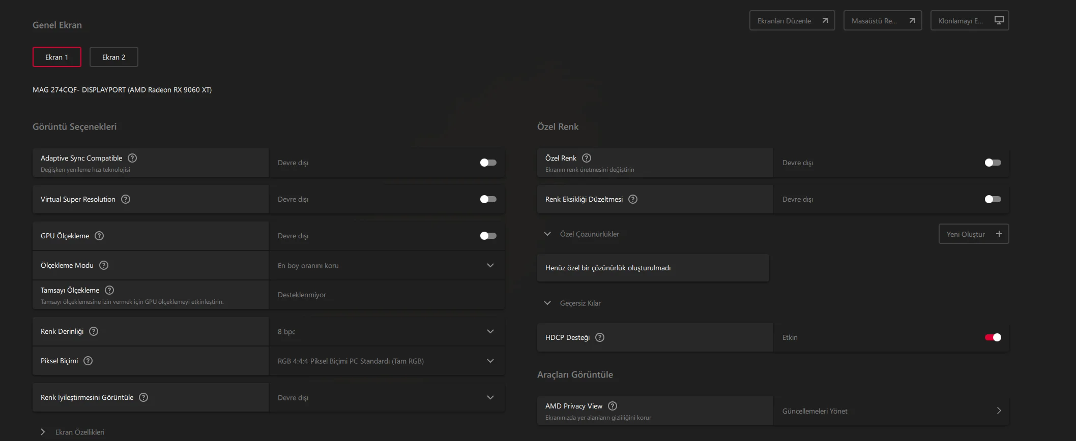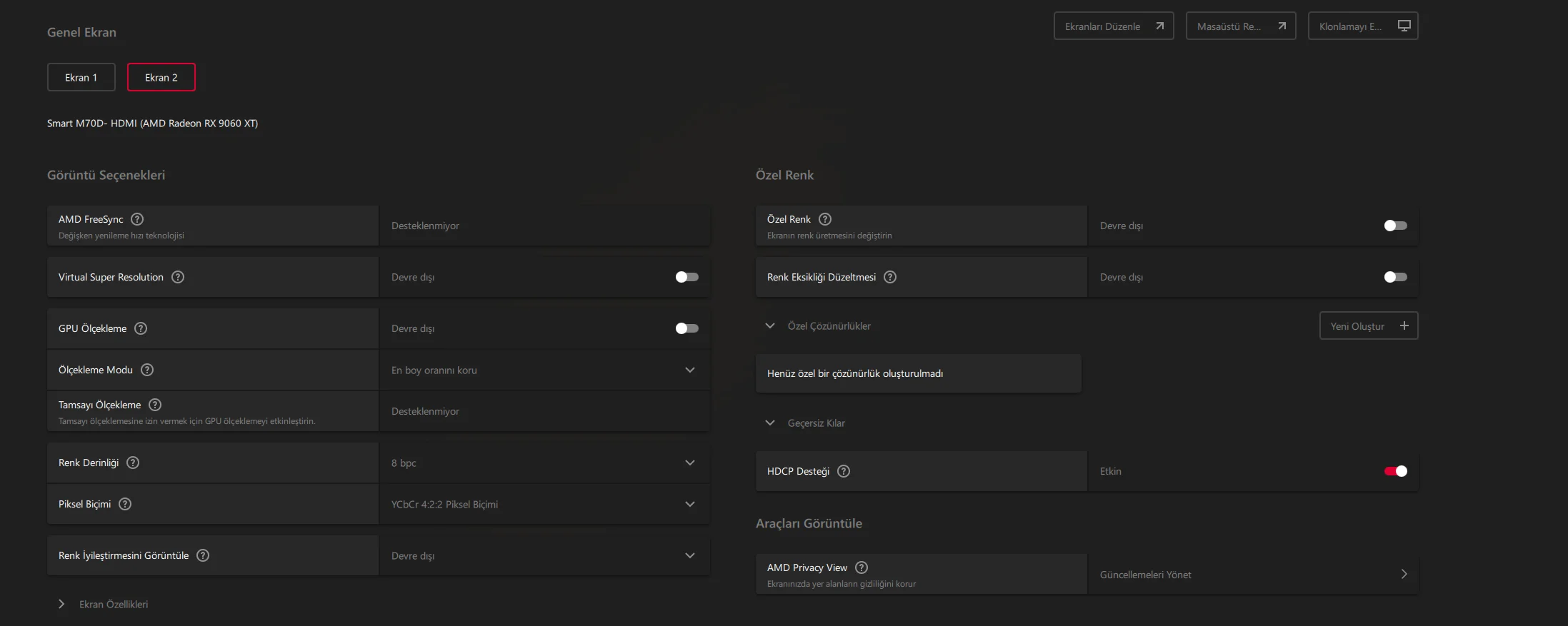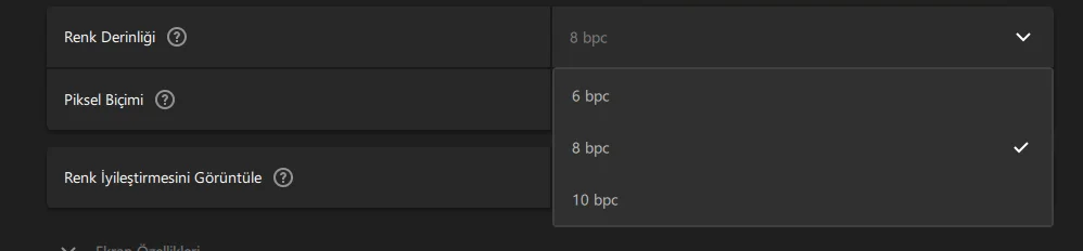 Hangi piksel biçimini seçmeliyim rgb mi YCbCr miYüksek ihtimal düşük yenileme hızlarında 10 bit veriyordur.