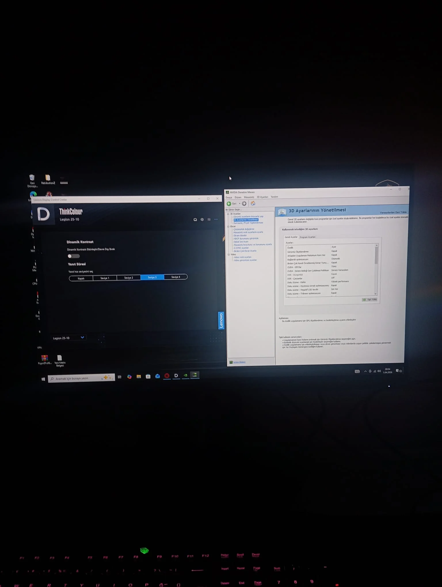 Arkadaşlar Lenovo legion 320 hz olan monitörü kurdum ama renkleri biraz garip bunları nasıl ayarlayacağım lenovo control panel ve nvidia ayarlarını bana atar mısınız lütfen kendi başıma yapamayacağım gibi