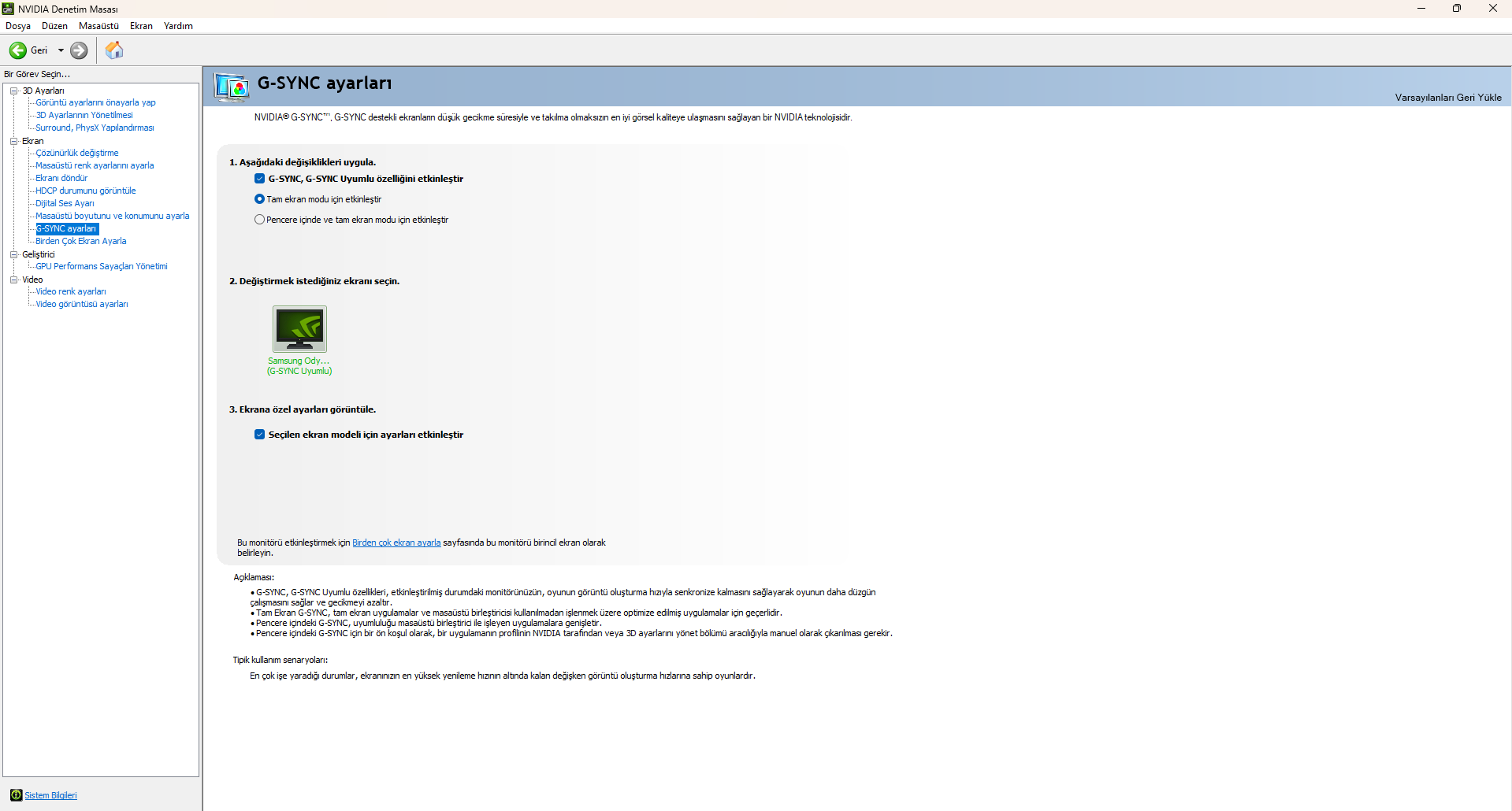 3-Monitörünüzün ayar sekmesinde Adaptive Sync özelliği var ise aktif edin. (ben o şekilde kullanıyorum.)