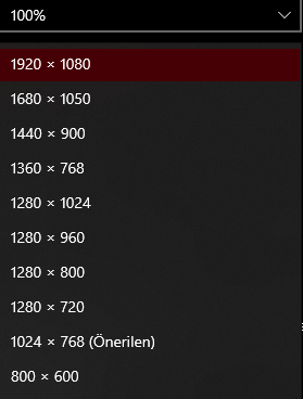 1024x768 ayarlayınHocam 1366x768 diye bir seçenek yok 1360x768 var
