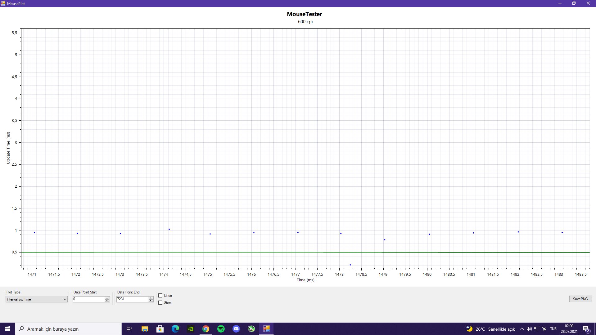 Interval vs time. Mouse imlecini yeşil çizgiye getirip scroll tuşuyla bayağı bir yakınlaştır. Ama aşırı da olmasın. Solda 0,5'lu sayılar çıkana kadar.