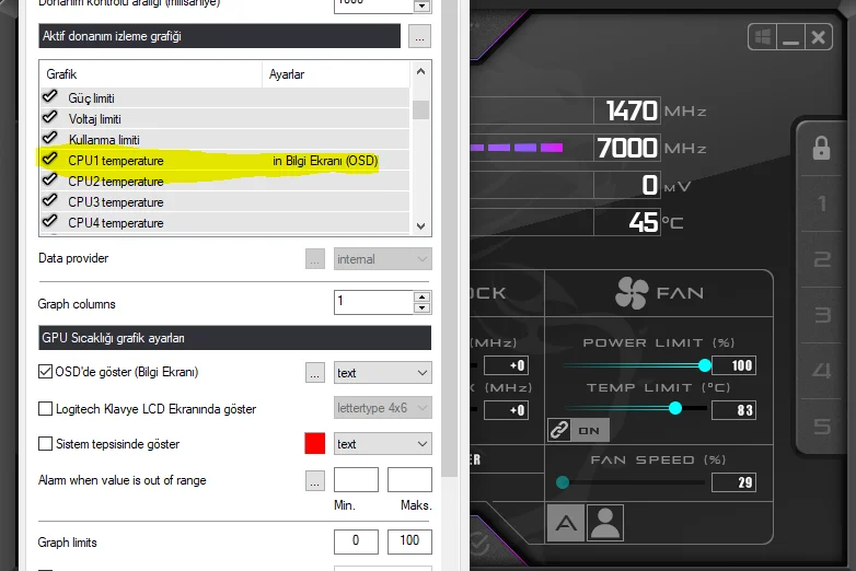 GPU DEĞİL CPU1 Sıcaklığını aktif edinizCPU Sıcaklığını göstermeyi açamıyorum var mıdır bir yolu arkadaşlarımda falan CPU Sıcaklığı var ama bende yok.