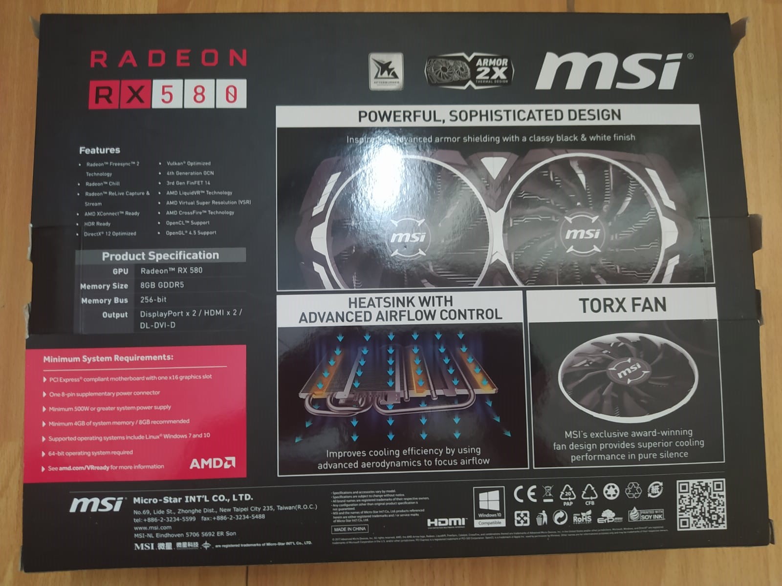 Msi Armor Rx580 Kutu tasarımı,resmi: