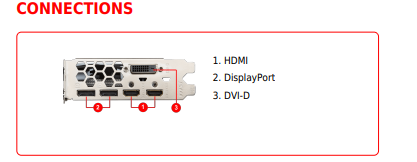 Ekran kartımıızn girişleri 2xHDMI 2.0 2xDisplayport 1.4 1xDVİ Dijital giriş birimleri bunlardan ibarettir.