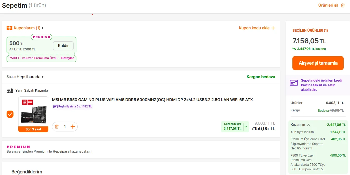 ekledim kızma hayatımMSI MB B650 GAMING PLUS WIFI AM5 DDR5 6000MHZ(OC) HDMI DP 2xM.2 USB3.2 2.5G LAN WIFI 6E ATX