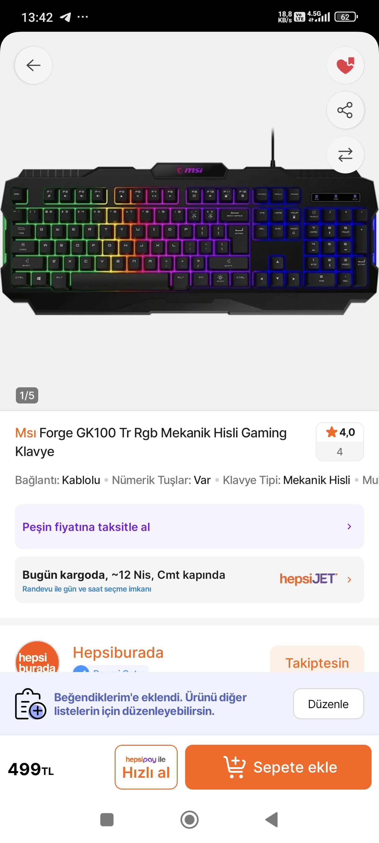 mekanik hisli diye bir şey yok direkt membram buMSI FORGE GK100 TR RGB MEKANİK HİSLİ GAMİNG KLAVYE 499 TL SON 6 AYIN EN DÜŞÜK Fiyatı. Akakçe ye göre son 6 ayda en düşük 540 düşmüş.