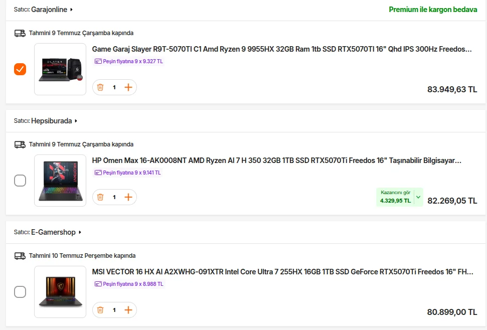 Hocam bende direkt bu üçü arasındayım fakat en alttaki bende 76.854 tl oluyor sepette , en üstteki 86 bin , anlamadım gitti