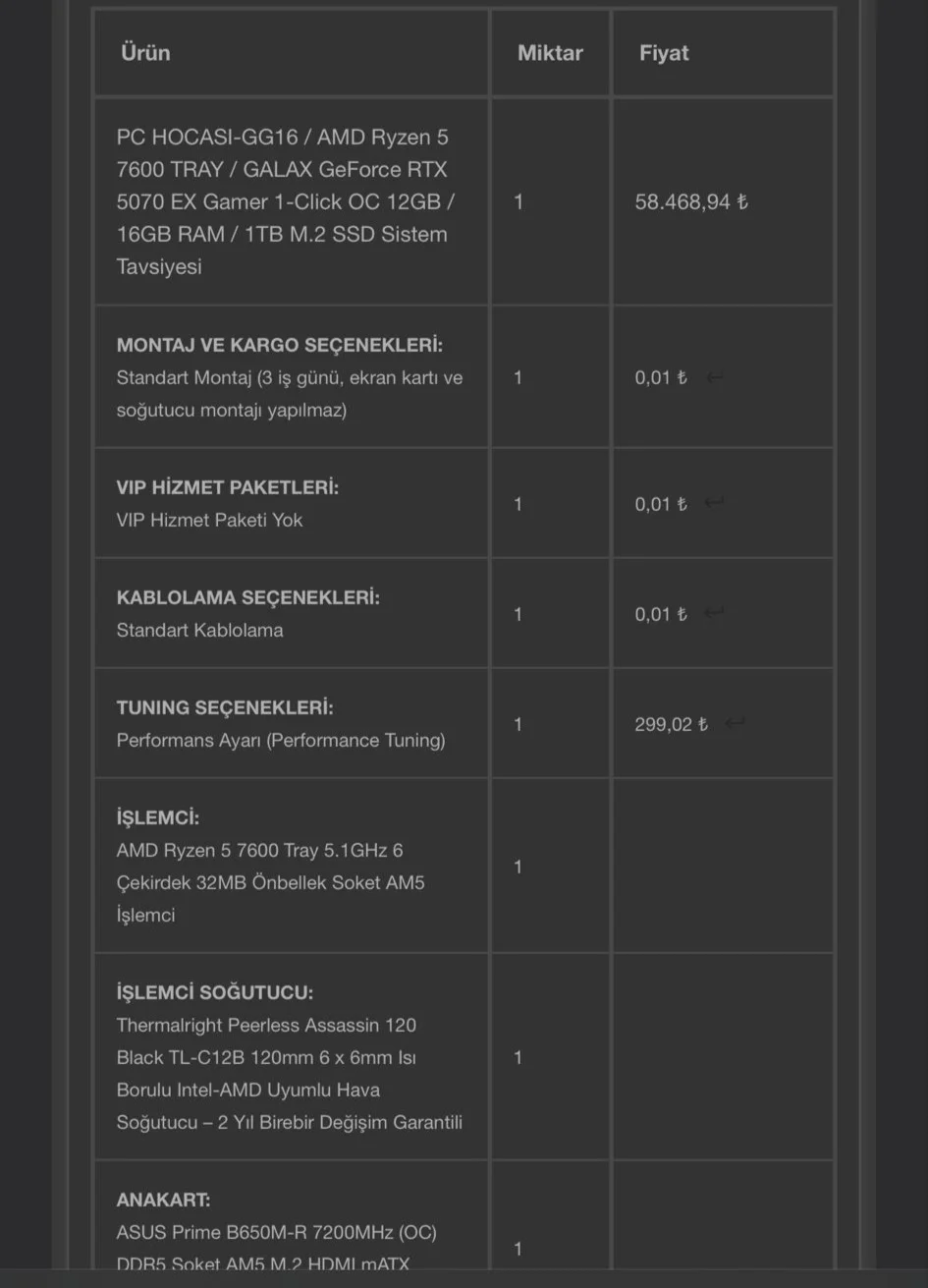 Çok teşekkür ederim kardeşim dengeli bir sistem olduğunu düşünüyorum bana yeter BÜTCE olarakta aşırı pahalı değil benceYok onu demedim uyanıklar güya montajı ücretsiz göstermiş performans ayarlarından kesmiş. Hayırlı olsun her türlü kar ettirir. Seneye bu fiyatlar aranacak bir şekilde biraz pahalı da olsa harekete geçebiliyosan geçeceksin. Tekrar hayırlı olsun hocam