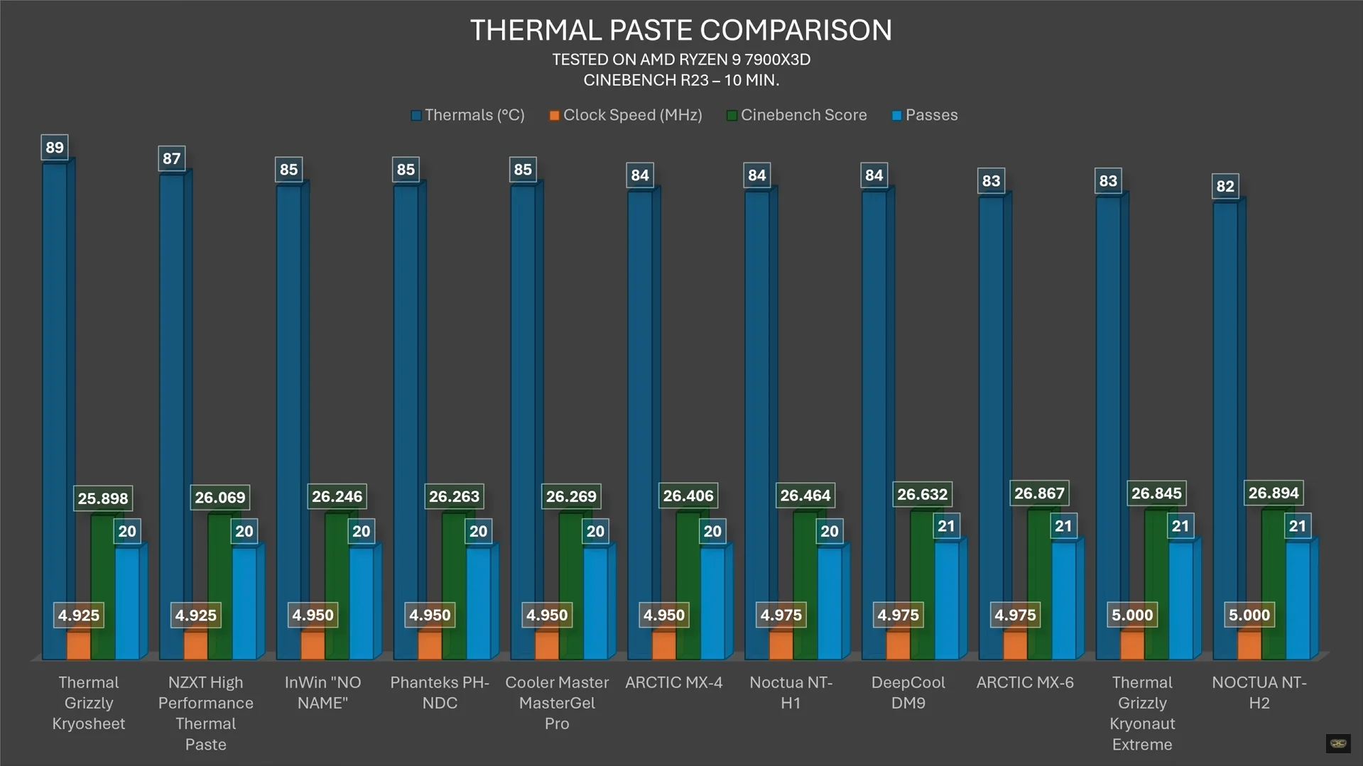 Arkadaşlar şimdi termal macunun ne kadar önemli olduğunu anladım. Arctic MX6 vs. Noctua NT-H2 sıcaklık ve puan farkı her şeyi gösteriyor. Sizinle de paylaşmak istedim ki termal macun alırken mutlaka dikkat edin kaliteye.