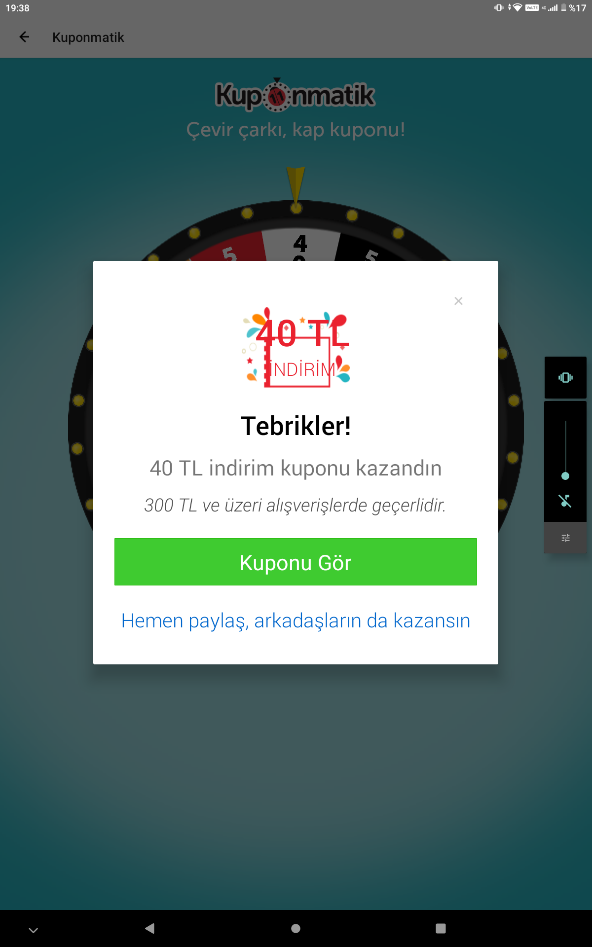 n11’in Kuponmatik oyunundan 40 TL kupon kazandım. Sen de çevir çarkı, kap kuponlardan birini!https://www.n11.com/kuponmatik