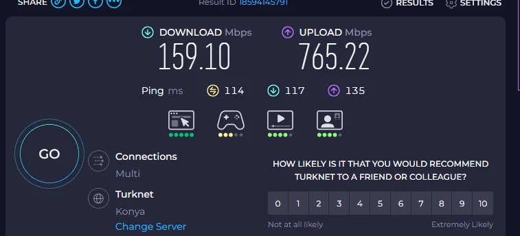 ben iki modem kullanıyorum ana modememi bağlı olmam lazım bu arada bu test sonucları ana modemdede aynı şekilde
