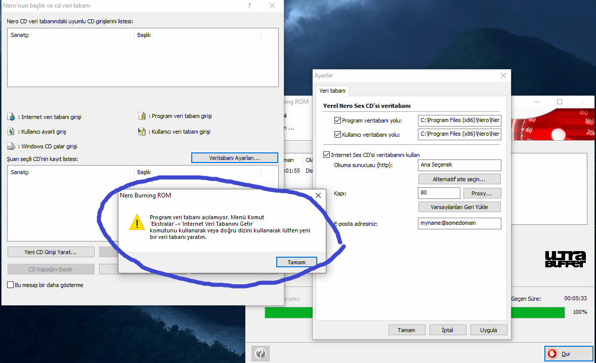 Nero exp. veri tabanı sorunu