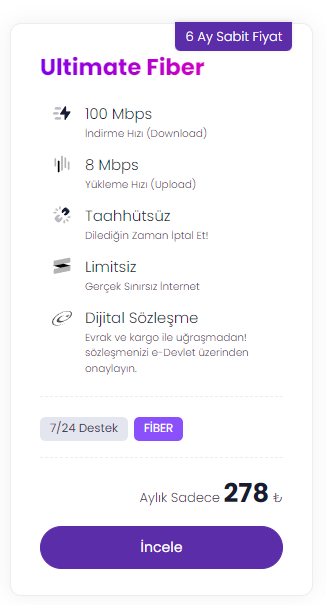 burada fiber yok maalesefBeni yanlış anlama da o kadar para verebilecekken Netspeed veya Turknet geçmenize karar vermenizi anlamadım. Sözleşmeli TT daha mantıklı. 6 ay sonra asgeri ücret zammından sonra, bu fiyatlar yine aşğıda kalacak ve sözleşmesiz firmalar bir tık daha yukarı atacak, sonra bir tık daha. Yılda 2-3 kere zam gelir oldu. 1 sene sonunda en kötü TT'nin soldaki fiyatlarına gelmiş olacaksınız. Sonrası için arkası belli olmayan bir durum. Sene başında alt. firma testi yaparken firma trolleyince TT sözleşmesini yenilemiştim, geçenlerde de hız yükseltmesi yaptım. 200 mbps'ye 280₺ ödüyorum, sonraki 12 ay için 340 mı ne olacak.