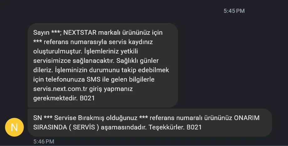 Aslında servis kayıtlarının açıldığı kapatıldığı ve resimlerinin yüklendiği bir yer var servis.next.com.tr @Zalımo ilk kurulum için kayıt açtırdığın da sms ile iletilen id ve şifreyi girerek servisin hangi işlemi uyguladığını görebiliriz aslında.