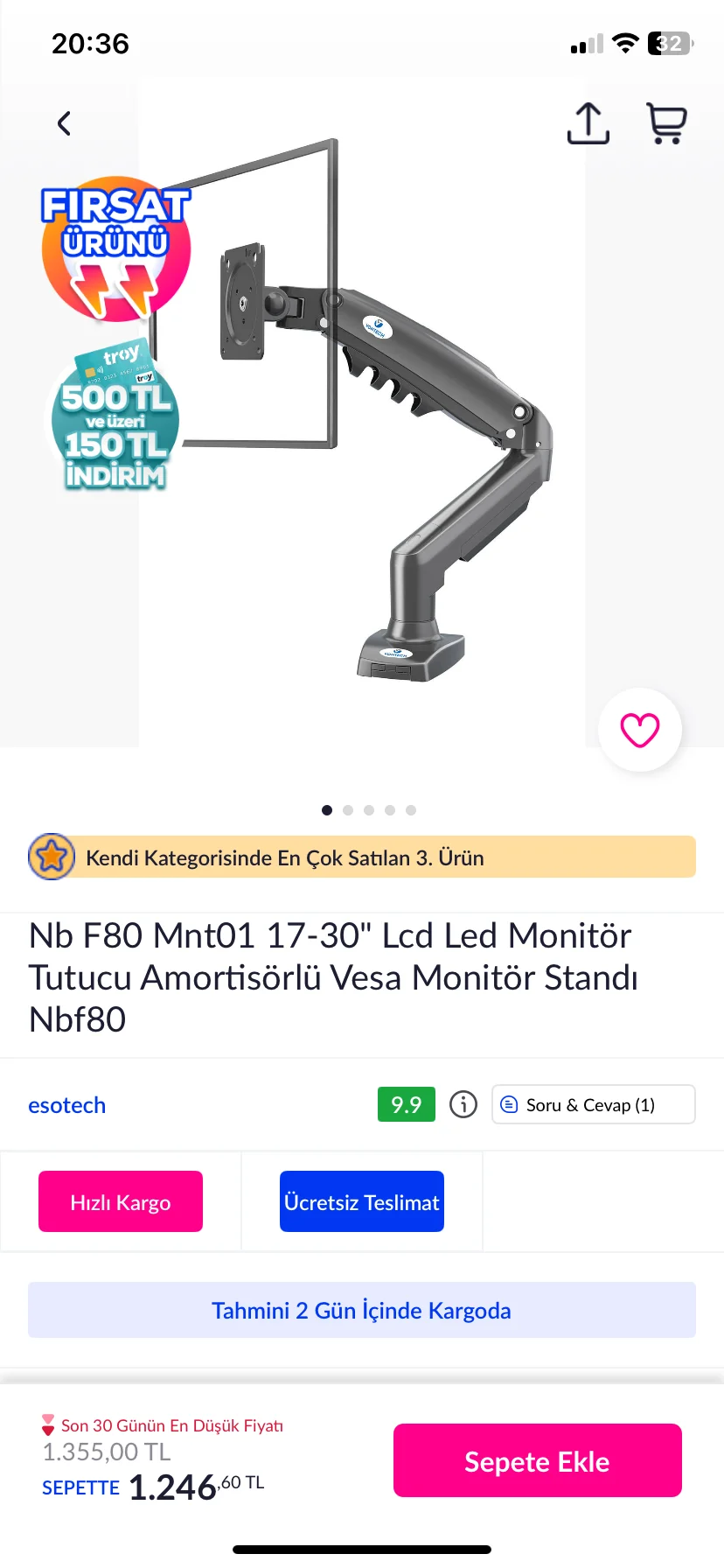 O kadardan bişe olmaz ya hem fiyatı 1246 normalde Troy avanatajı varDaha geçen gün 1155 aldık .d n11den ne alsak ertesi gün indirimli
