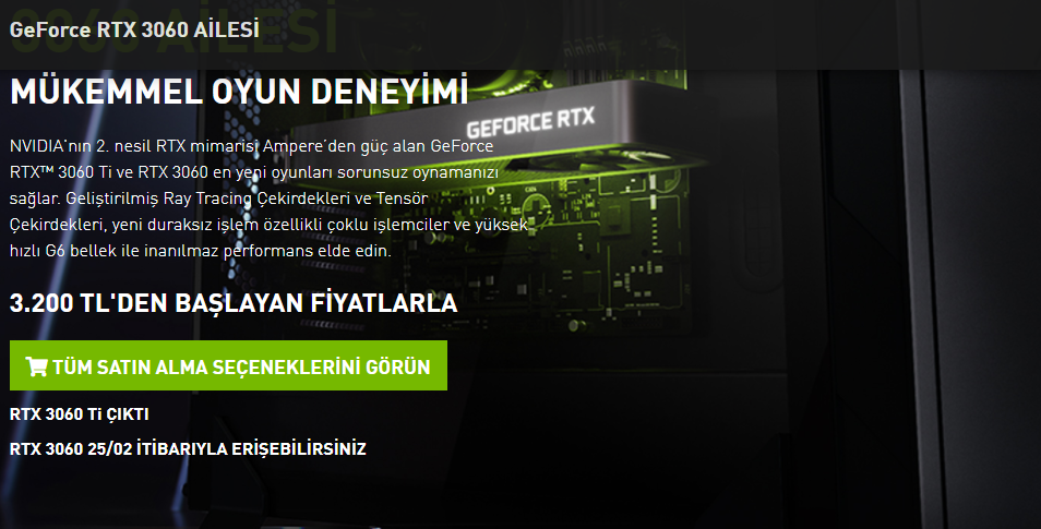 kart direk kara borsa olucak ciddi alıcıysan çok hızlı olman lazımDOSTLARIM NVİDİA BÖYLE BİR AÇIKLAMA YAPTI AÇIKLAMA GÖRE 25'İNDE 3060 3200 TLDEN ÇIKACAK BEYLER 25İNİ BEKLİYORUM 3200 DAHİ OLMASA 4 DAHİ OLSA ALIRIM 12 13K BÜTÇEM VAR ŞUAN 3060LI SİSTEMLER 15K CİVARI MANTIKLI MI ALMAM 25İNDE NERDEN ALABİLİRİM EKRAN KARTINI DİREK ?