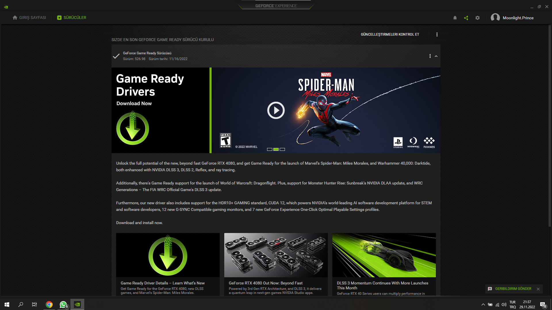 Nvidia experiance indirip oradan sürücüügüncelleştirdim ama oo güncelleştirme ile bu birmi bilmiyorum