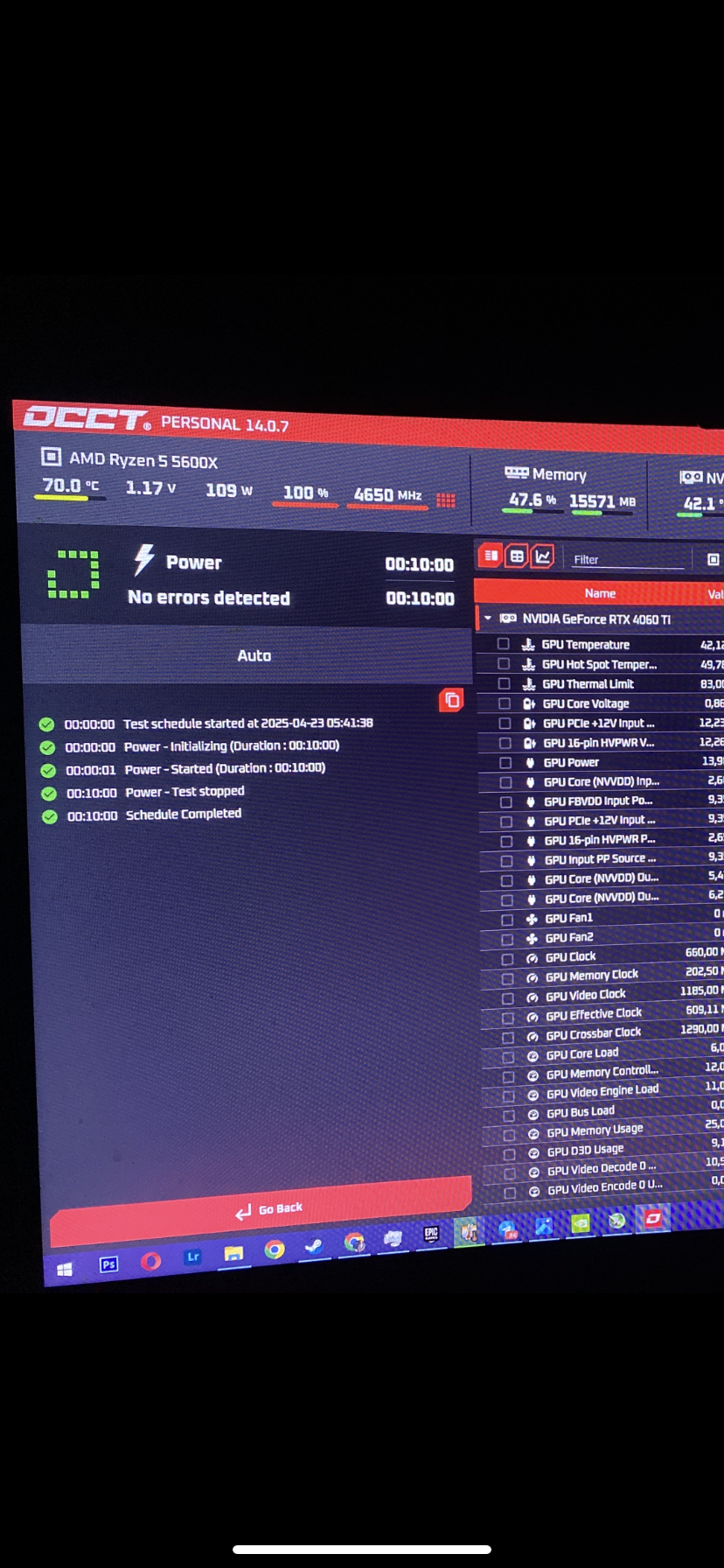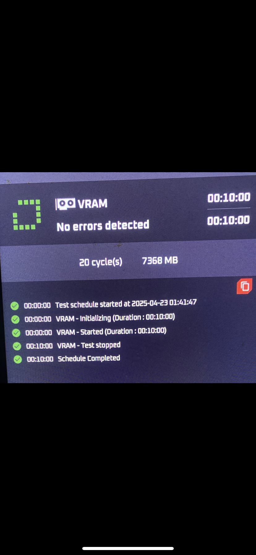 Merhaba arkadaşlar dün yeni bir ekran kartı aldım. ZOTAC RTX 4060Tİ 8GB ikinci el olarak aldım eve geldim testleri yaptım OCCT 3D testi yaptım ve VRAM testi yaptım 10 dakika hiç bir sorunla karşılaşmadım Daha sonra FURMARK testi yaptım 38 dakika 66 derece kart 82 derece HOTSPOT sıcaklığına ulaştım herhangi bi sorunla karşılaşmadım akabinde tekrardan OCCT ye girdim güncelleme vardı güncellemeyi yaptım uygulamayı yeniden başlatmadım POWER AUTO testi başlattım ve milyonlarca hata almaya başladım ekran kartından testi durdurdum ve programı kapatıp yönetici olarak çalıştırdım bu sefer hiç bir sorunla karşılaşmadım akabinde tekrar 28 dakika FURMARK testi yaptım ve aynı sıcaklıklarla karşılaştım CYBERPUNK RDR2 GTA5 gibi oyunlarda denedim hiç bir sorunla karşılaşmadım merak ettiğim nokta OCCT POWER AUTO testinde neden böyle bir sorunla karşılaştım