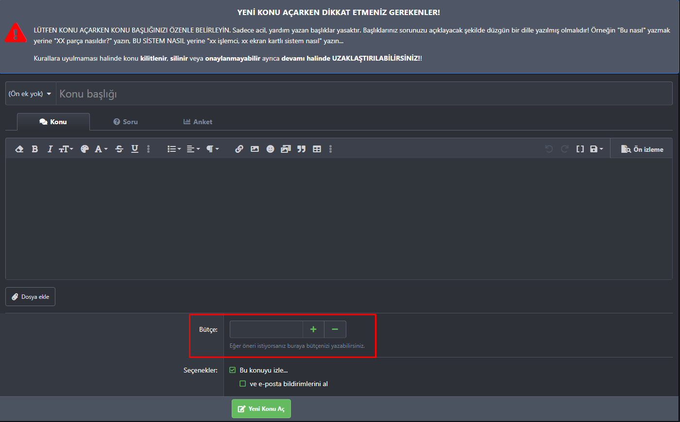 Öneri konularına "BÜTÇE" ekleme özelliği geldi