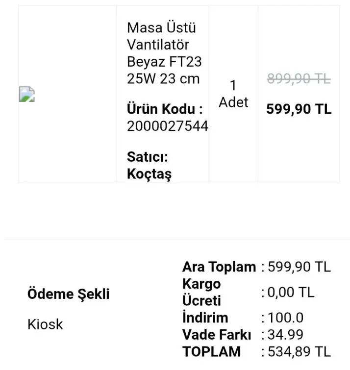 Abi lütfen özele gel yardima ihtiyacım varÜrünü sepete ekleyin, sepete gidin ve 300tlye 100tl kupon gelcek 2tane. Misafir üyelik ile satın al diyin (üyelik açarsanız kupon gidiyor bug gibi) 499tlye geliyor. Hepsipayle de öderseniz yine hepsipapel de geliyor ekstradan. Eğer mağazadan teslim olarak almak isterseniz de ürünü aldıktan sonra 150tl koçtaş puan geliyor sonraki alışverişlerde kullanmanız için, 450tlye gelmiş oluyor. Yorumlar çok iyi, usb masa fanı fiyatına ve yorumları çok çok iyi.![]()